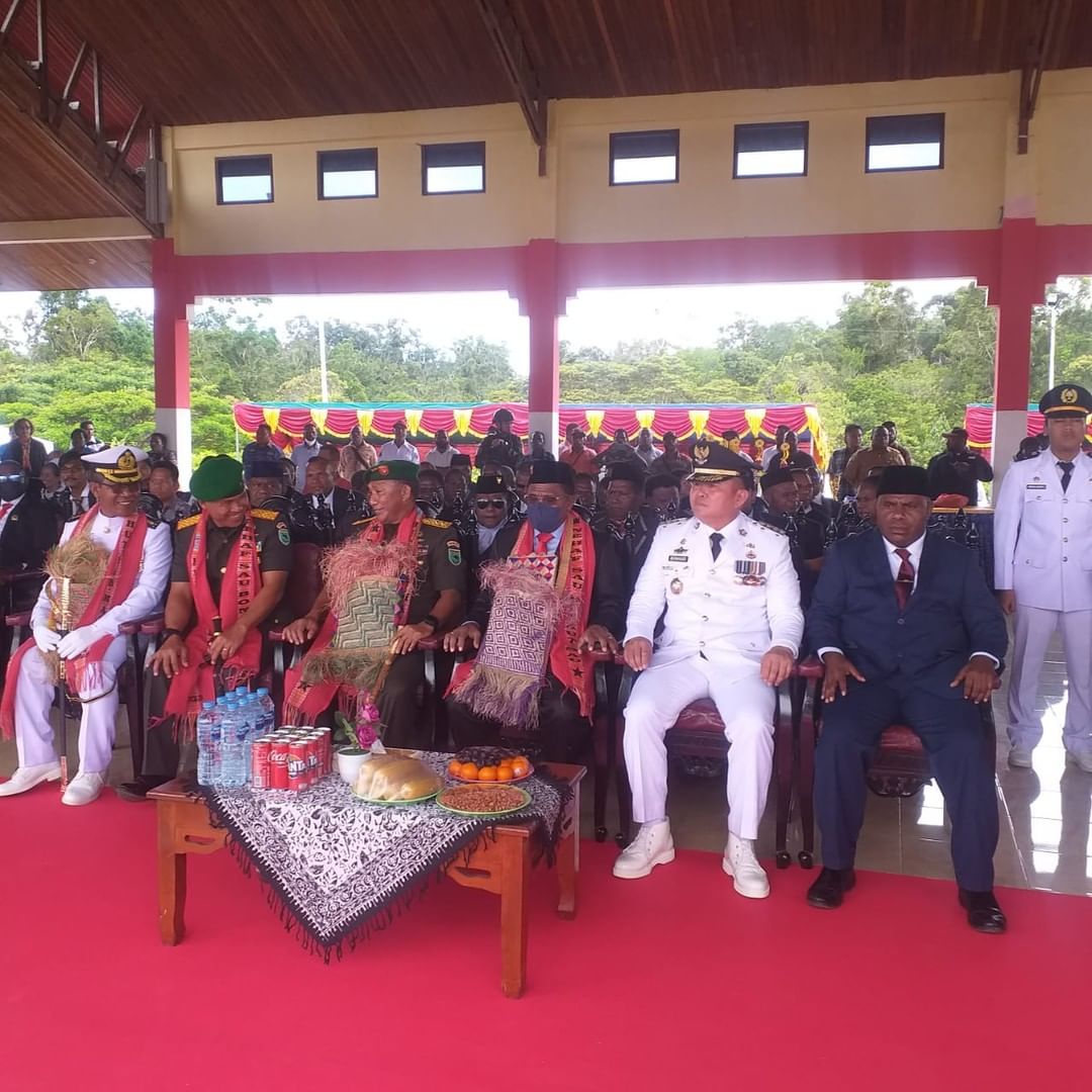 Staf Ahli Gubenur, Drs. Yakob Kareth, M.Si, Mewakili Penjabat Gubernur Papua Barat Daya menghadiri sekaligus memberi sambutan pada puncak hari jadi Kabupaten Maybrat ke 14, di alun-alun Fait Mayaf, Kumurkek Maybrat, rabu pagi (03/05/2023).