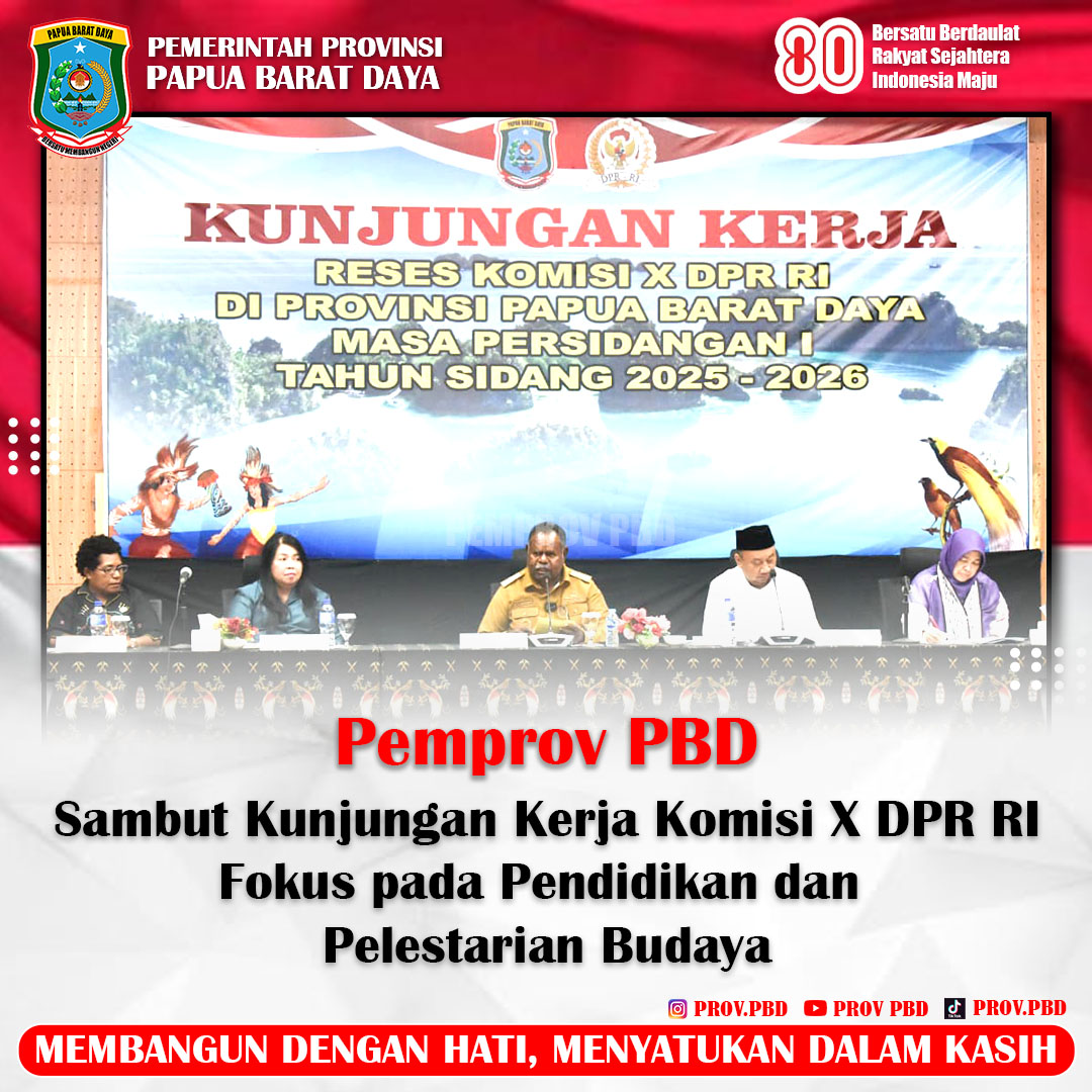 SORONG-Pemerintah Provinsi Papua Barat Daya menyambut baik kunjungan kerja reses Komisi X DPR RI Masa Persidangan I Tahun Sidang 2025–2026 yang berlangsung di Gedung Lambertus Jitmau, Kota Sorong, Senin (6/10/2025).
