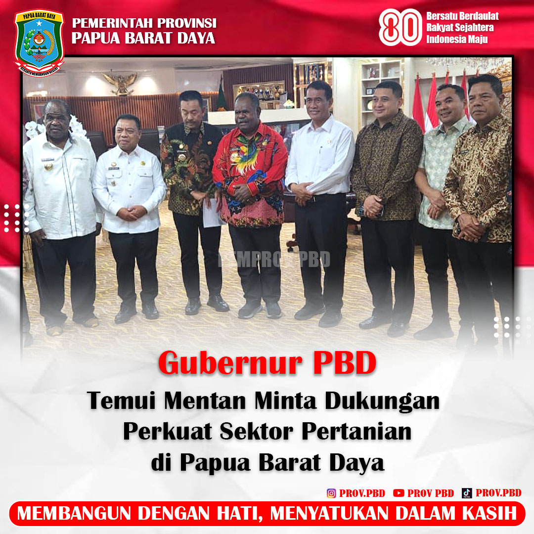 “Kebetulan yang kita butuhkan di daerah sejalan dengan upaya nasional memperkuat ketahanan pangan. Kami sudah bertemu langsung dengan Pak Menteri dan menyampaikan kebutuhan Papua Barat Daya,” ujar Gubernur Elisa Kambu.