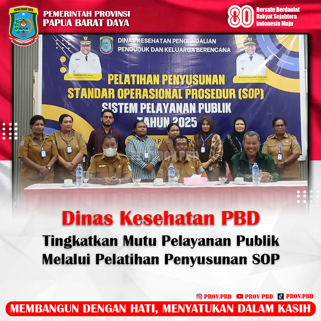 SORONG-Dalam rangka meningkatkan tata kelola dan standar pelayanan publik di sektor kesehatan, Dinas Kesehatan Pengendalian Penduduk dan Keluarga Berencana (Dinkes P2KB) Provinsi Papua Barat Daya menggelar pelatihan penyusunan Standar Operasional Prosedur (SOP) di Belagri Hotel, Kota Sorong, Selasa (04/11/2025).