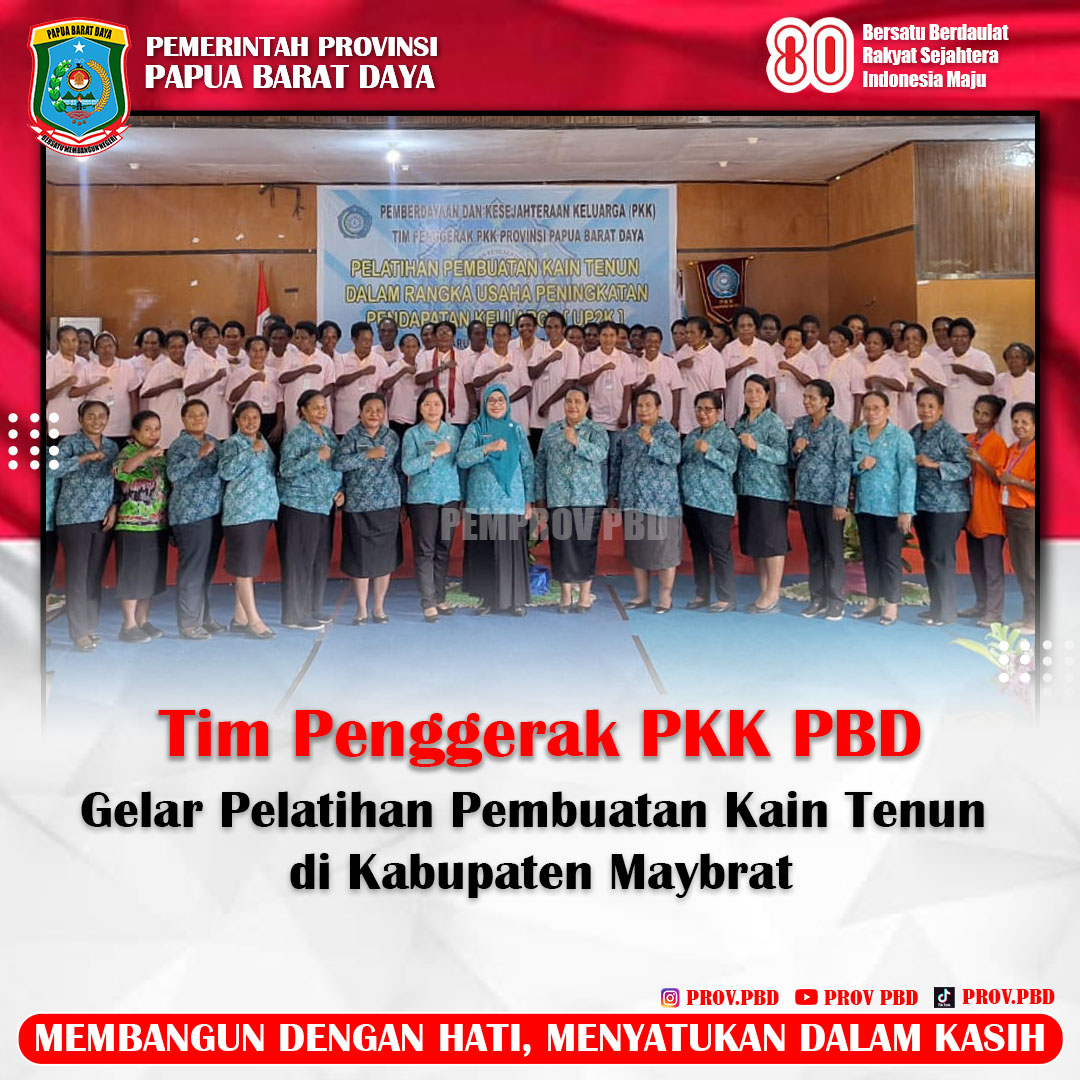 Maybrat-Tim Penggerak PKK Provinsi Papua Barat Daya menggelar pelatihan pembuatan kain tenun bagi para kader PKK di Kabupaten Maybrat. Kegiatan berlangsung selama tiga hari, mulai 6 hingga 8 November 2025, bertempat di Gedung Samu Bah Ayamaru.