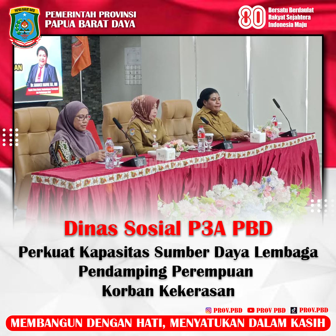 SORONG-Dinas Sosial Pemberdayaan Perempuan dan Perlindungan Anak (Dinsos P3A) Provinsi Papua Barat Daya menggelar kegiatan peningkatan kapasitas sumber daya bagi lembaga penyedia layanan penanganan perempuan korban kekerasan tingkat provinsi. Kegiatan ini sekaligus dirangkaikan Pelatihan mitra lembaga penyedia layanan penanganan bagi perempuan korban kekerasan.