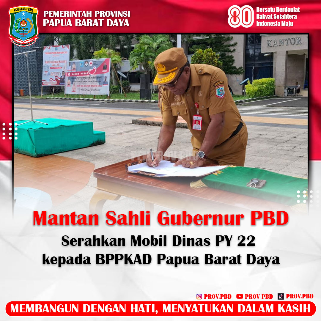 Mantan Sahli Gubernur PBD Serahkan Mobil Dinas PY 22 kepada BPPKAD Papua Barat Daya