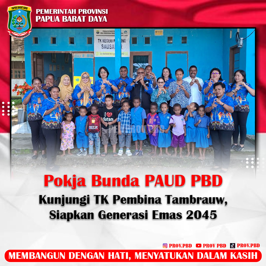 SAUSAPOR-Kelompok Kerja Bunda Pendidikan Anak Usia Dini (Pokja Bunda PAUD) Provinsi Papua Barat Daya melakukan kunjungan kerja ke TK Negeri Pembina Kabupaten Tambrauw, Kamis (29/01/2026). Kegiatan ini merupakan bagian dari upaya monitoring dan pendataan perkembangan layanan PAUD di wilayah tersebut.