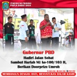 Gubernur PBD Hadiri Jalan Sehat Sambut Harlah NU ke-100/103 H, Berikan Doorprize Umroh